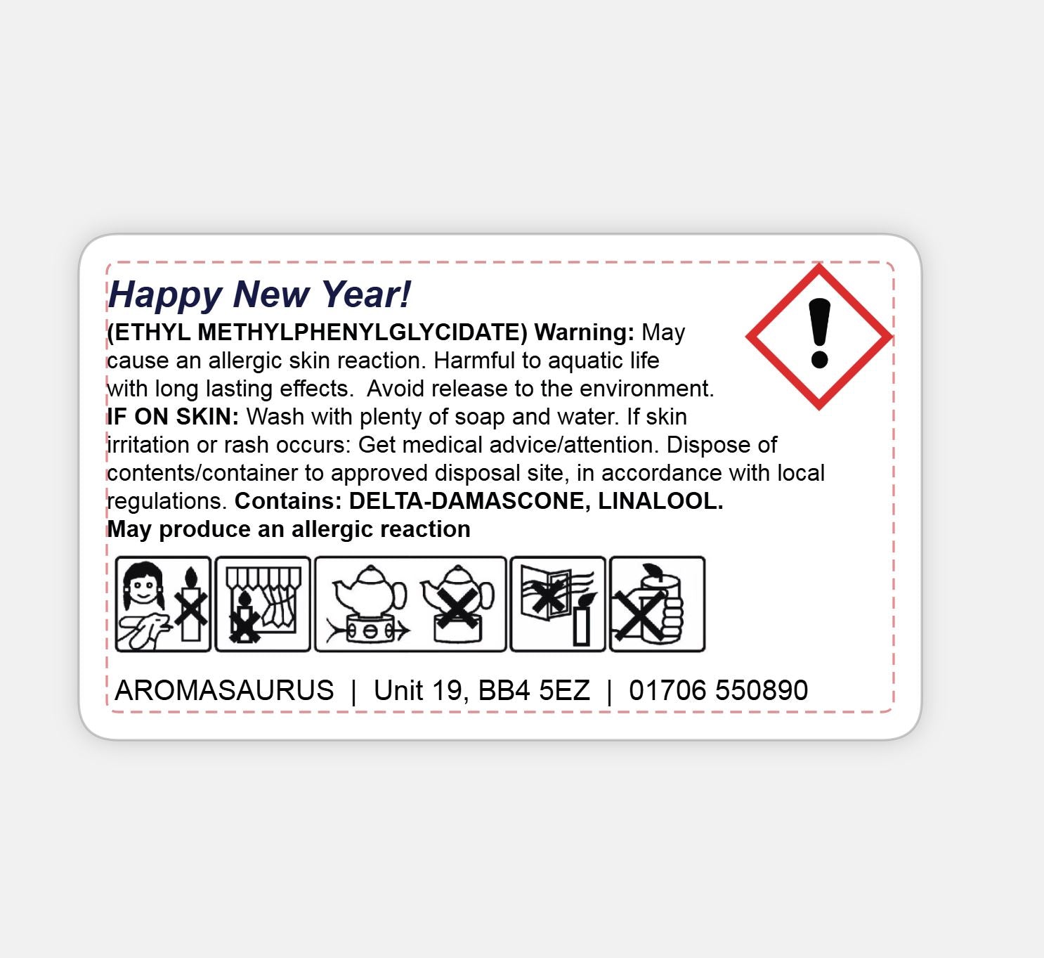 • Caution may stain fabric and surfaces. May cause skin irritation. Avoid prolonged contact with the skin.